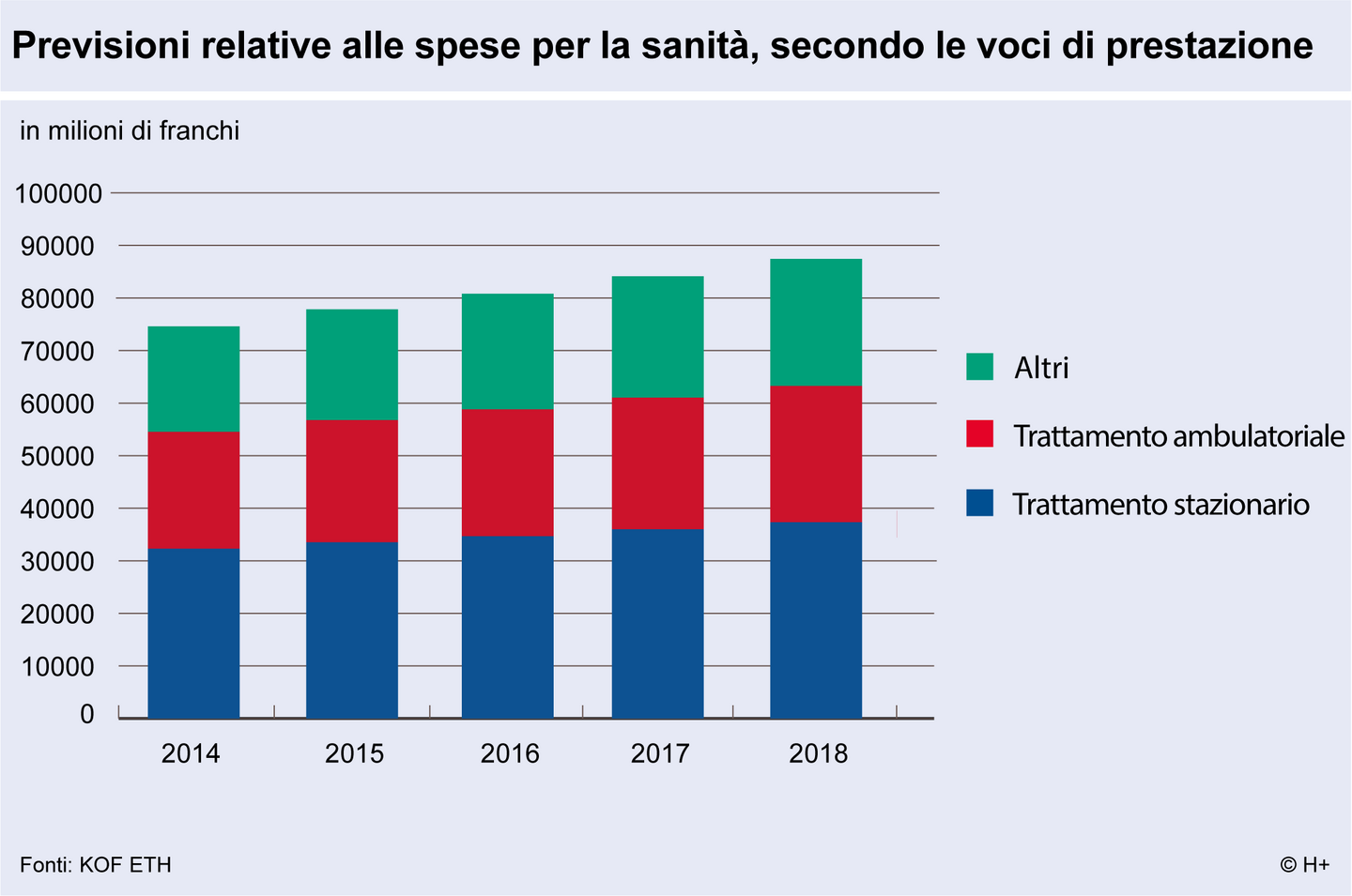 Uno sviluppo sempre ancora dinamico si nota nel settore «trattamento ambulatoriale curativo», facendo pensare che prosegue lo spostamento di spese dal settore stazionario a quello ambulatoriale. Il «trattamento stazionario» comprende le spese per il trattamento curativo, la riabilitazione e le cure di lunga durata